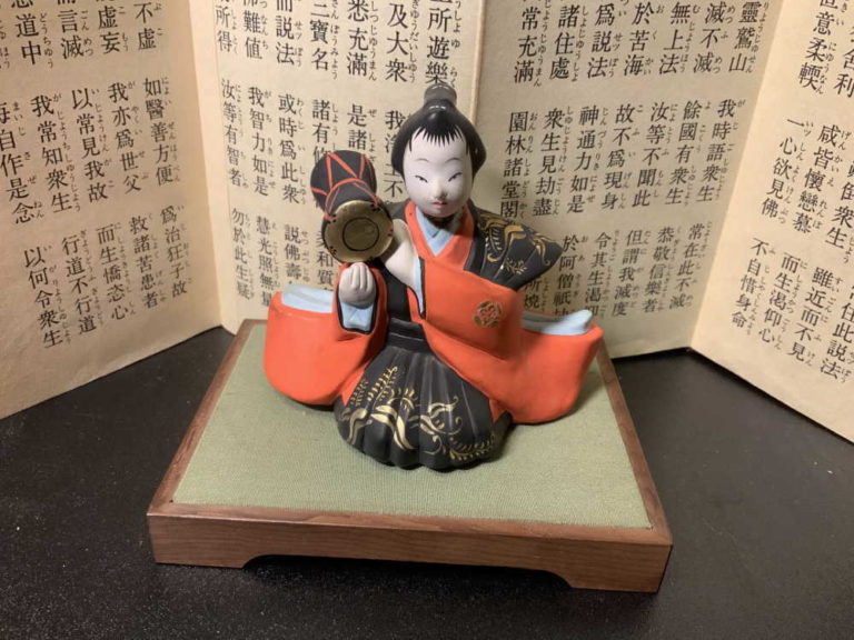 (染谷が最近入手した若衆人形。10㎝程度の小振りの人形です。可愛いです。若衆研の当日、浮世絵「稚立武勇揃」といっしょに持って行く予定です。)
