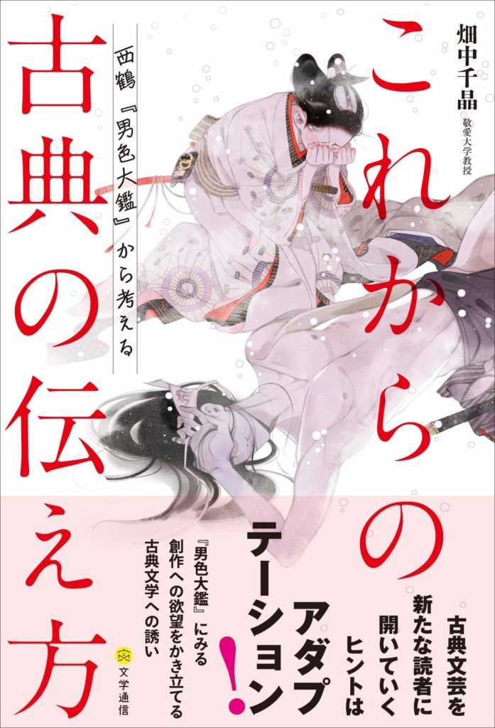 (畑中千晶さんの『これからの古典の伝え方』文学通信、2021年4月。出版されて、そろそろ一年だ。表紙は『男色大鑑』巻三の二「嬲りころする袖の雪」の山脇笹之介と伴葉右衛門。紗久楽さわさんの画)