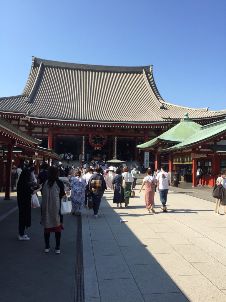 (昨日の若衆研の前に、久々に浅草を探索しました。雲一つない晴天で、俳句で「鉄棒といふ直線の灼けてをり(佐和)」の世界でしたね。まずは浅草寺へお参りと仲見世を冷やかしましたが、ずいぶんお店が変わっていたのに驚きました。香水や入浴剤などを売る店が増えていました)